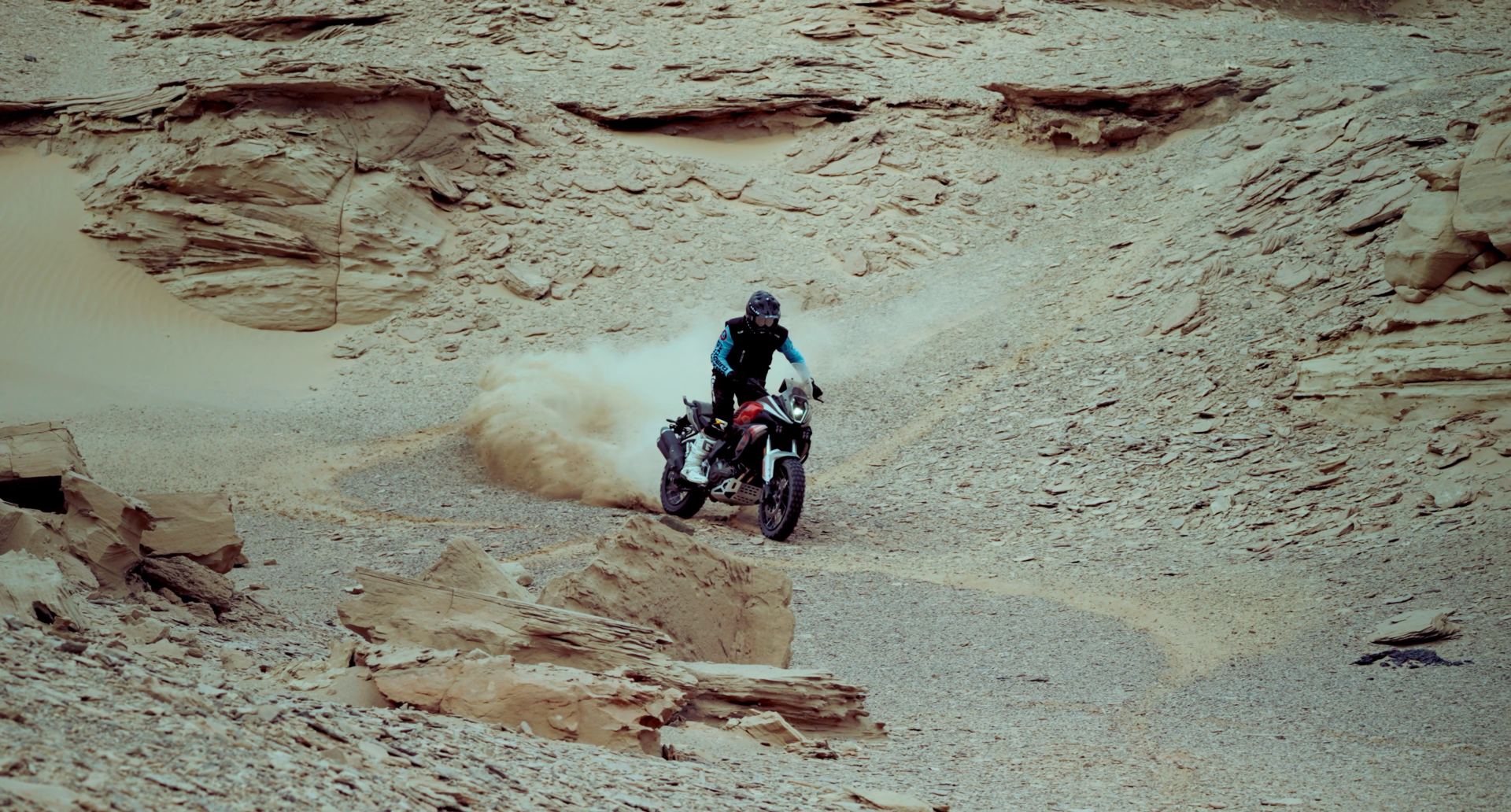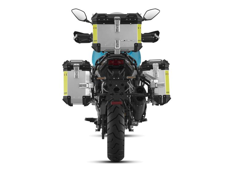 Adventure-mõõdus rehvid (120/70 R17 M/C ees ja 160/60 R17 M/C taga) annavad kindla haarduvuse ja enesekindluse ka vahelduvates oludes.