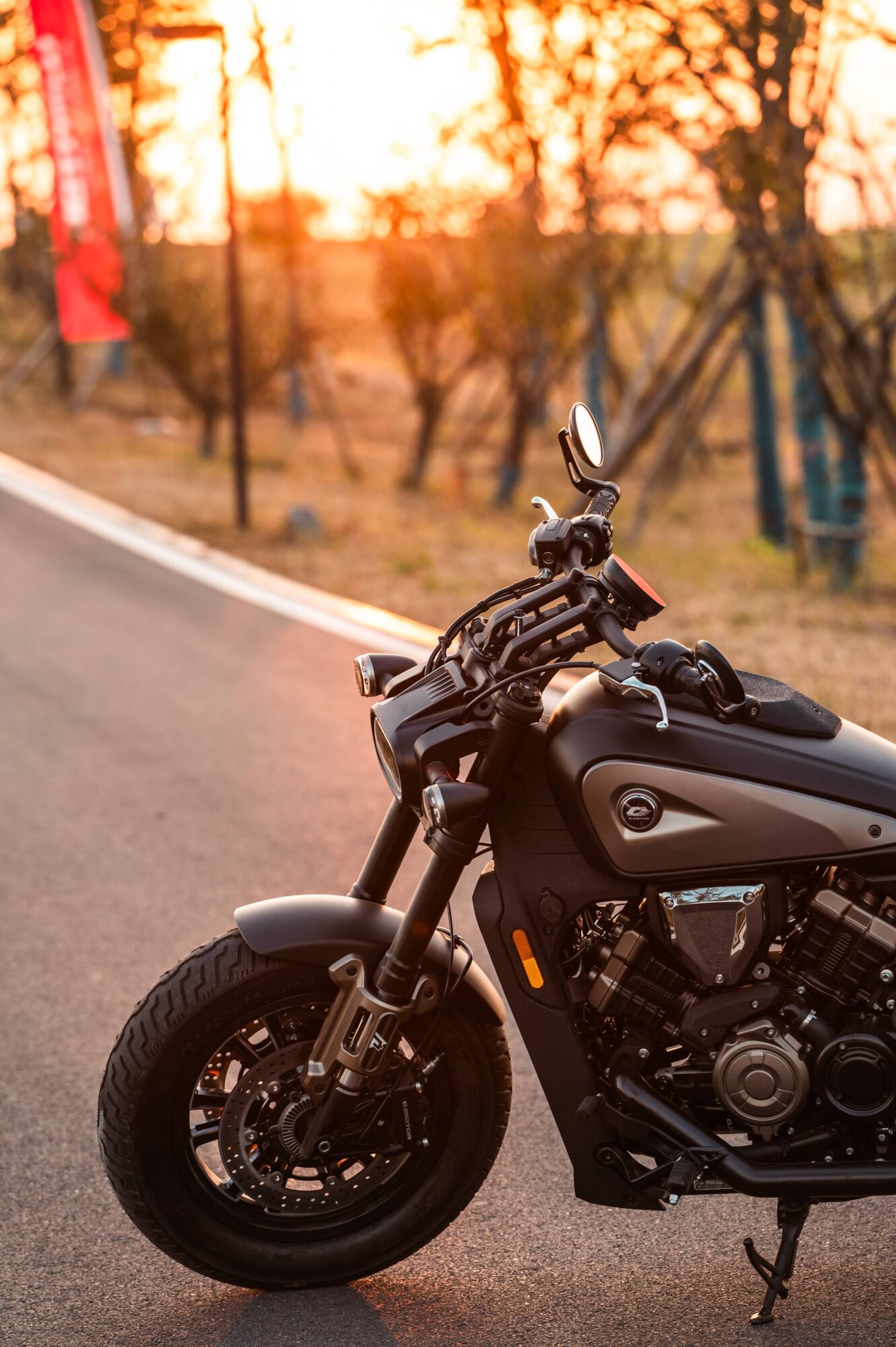 Rehvikomplekt kruiserile omases mõõdus – 130/90-16 ees ja 180/65-16 taga – annab stabiilsuse ja hea kontakti teepinnaga.