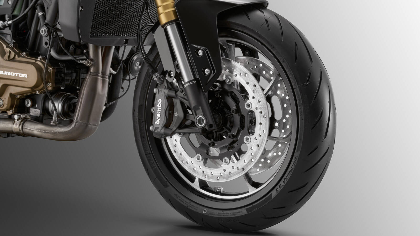 Võimsad ketaspidurid: 320 mm ees, 260 mm taga, mõlemad ABS-iga