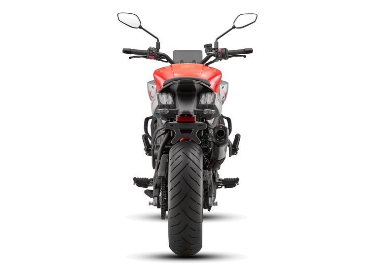 Rataste mõõdud – 120/70 R17 ees ja 180/55 R17 taga – pakuvad kindlat haardumist ja sportlikku kurvikäitumist.