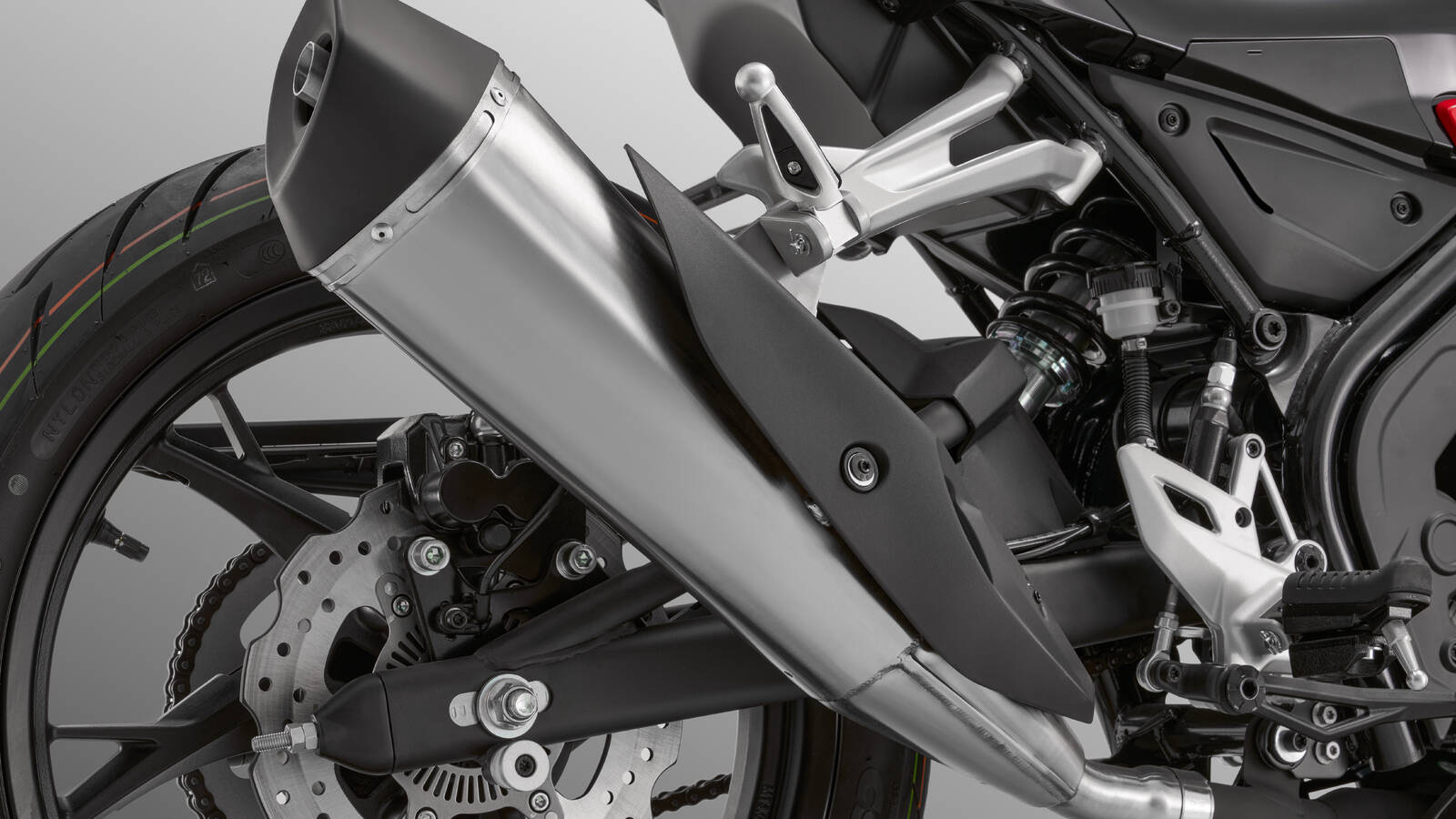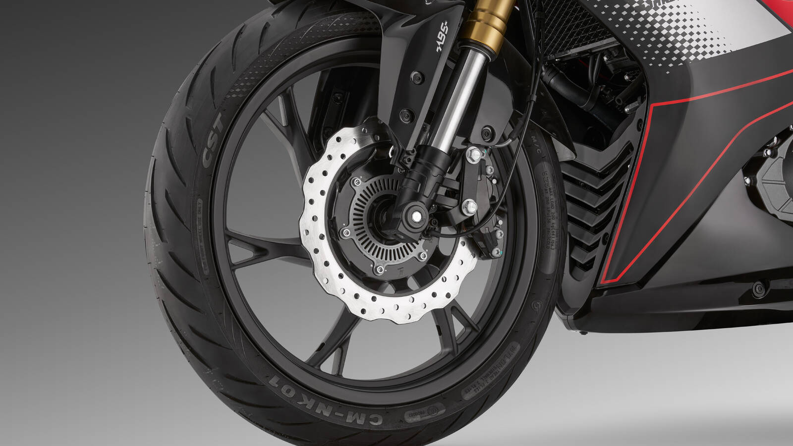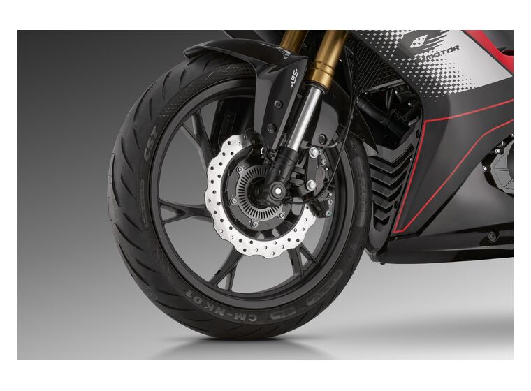 Sportrehvid (100/80–17 ees, 130/70–17 taga) tagavad kindla haarduvuse igas olukorras