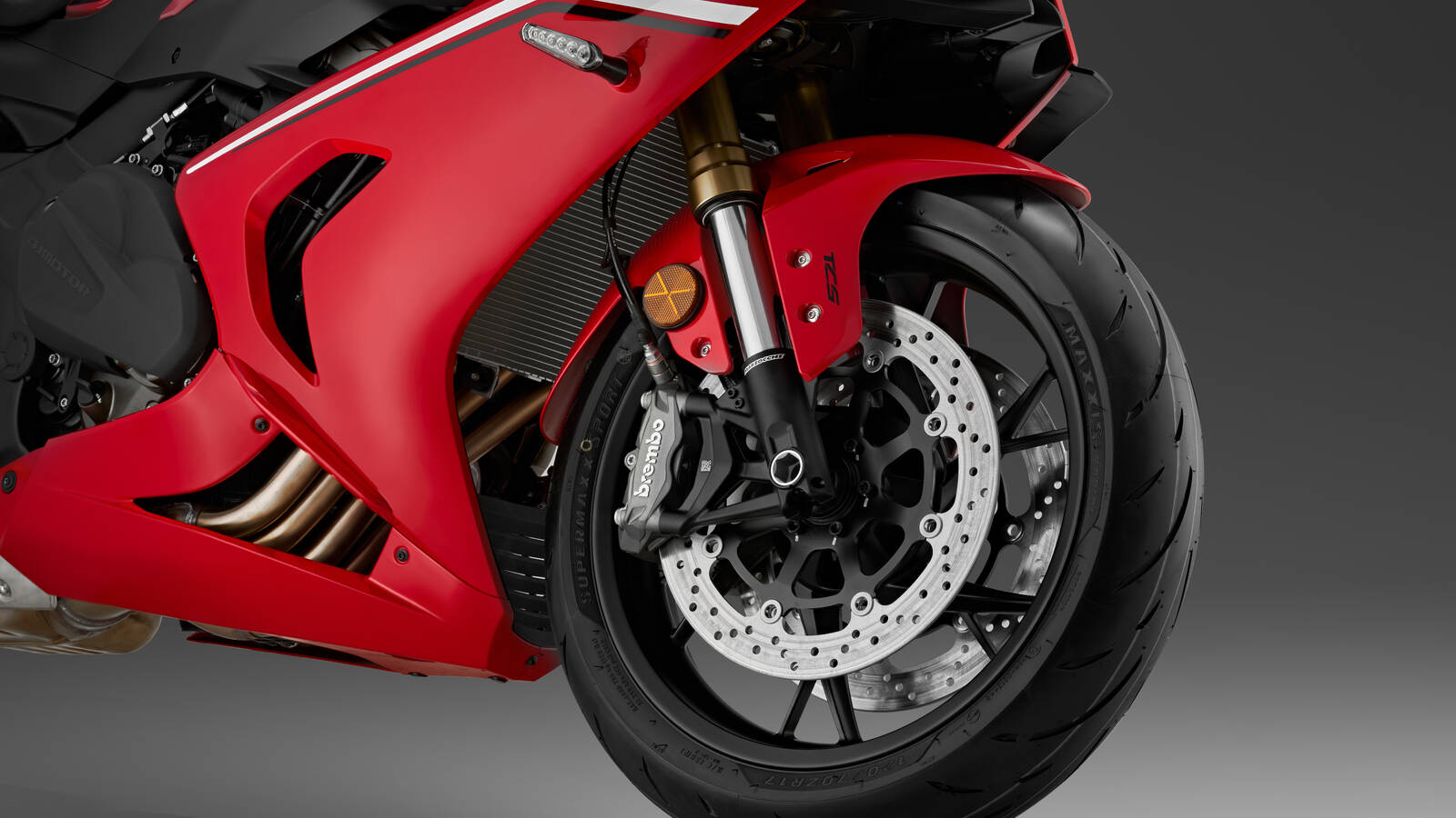 Kvaliteetsed sportrehvid (120/70 R17 ees, 180/55 R17 taga) tagavad gripi ja kindlustunde